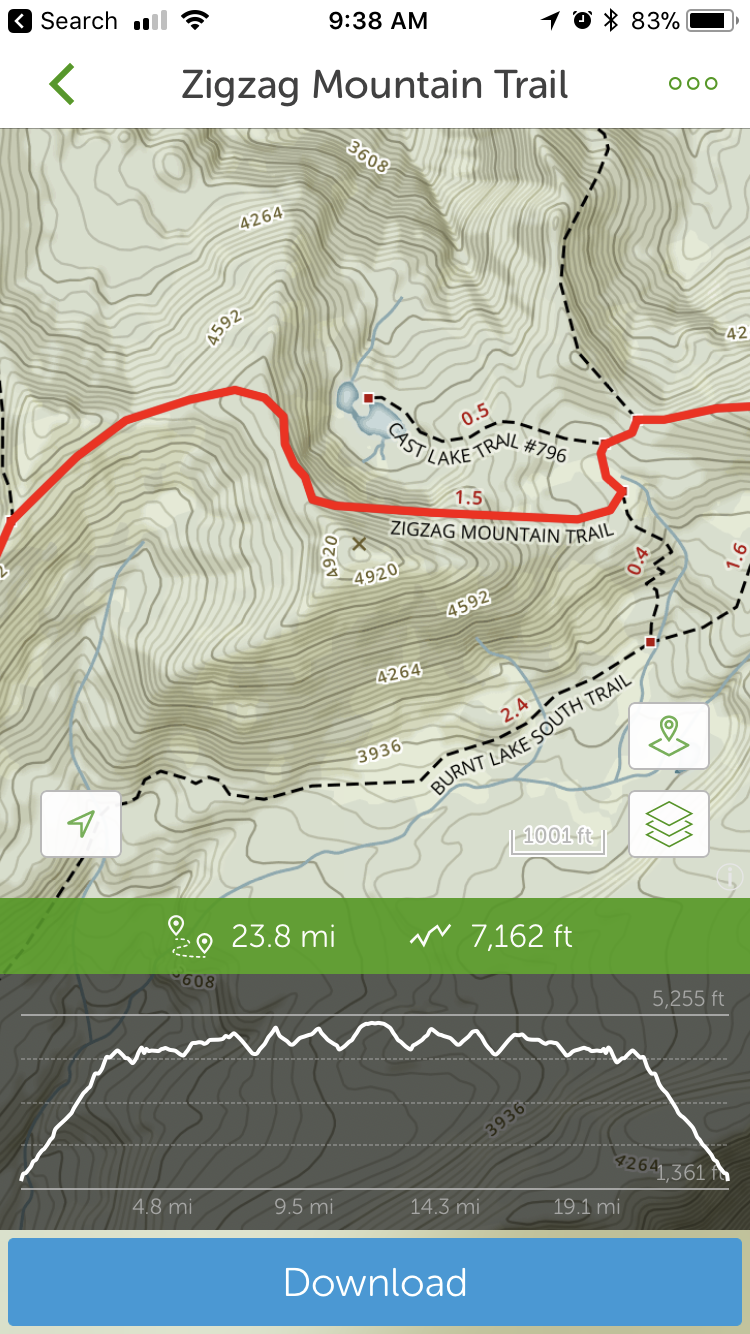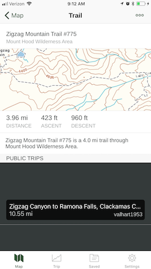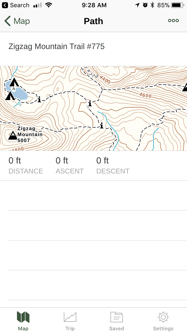 In the second image below, you can see where I tapped on the trail name, but am given zeros for the trail details. So, I have no way of knowing the distance or elevation profile of a trail.