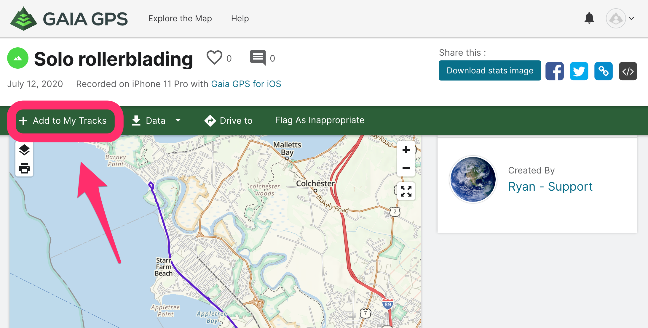In the meantime, you can open and save the shared link in a web browser.- Make sure you're logged in with your Gaia GPS account on gaiagps.com.