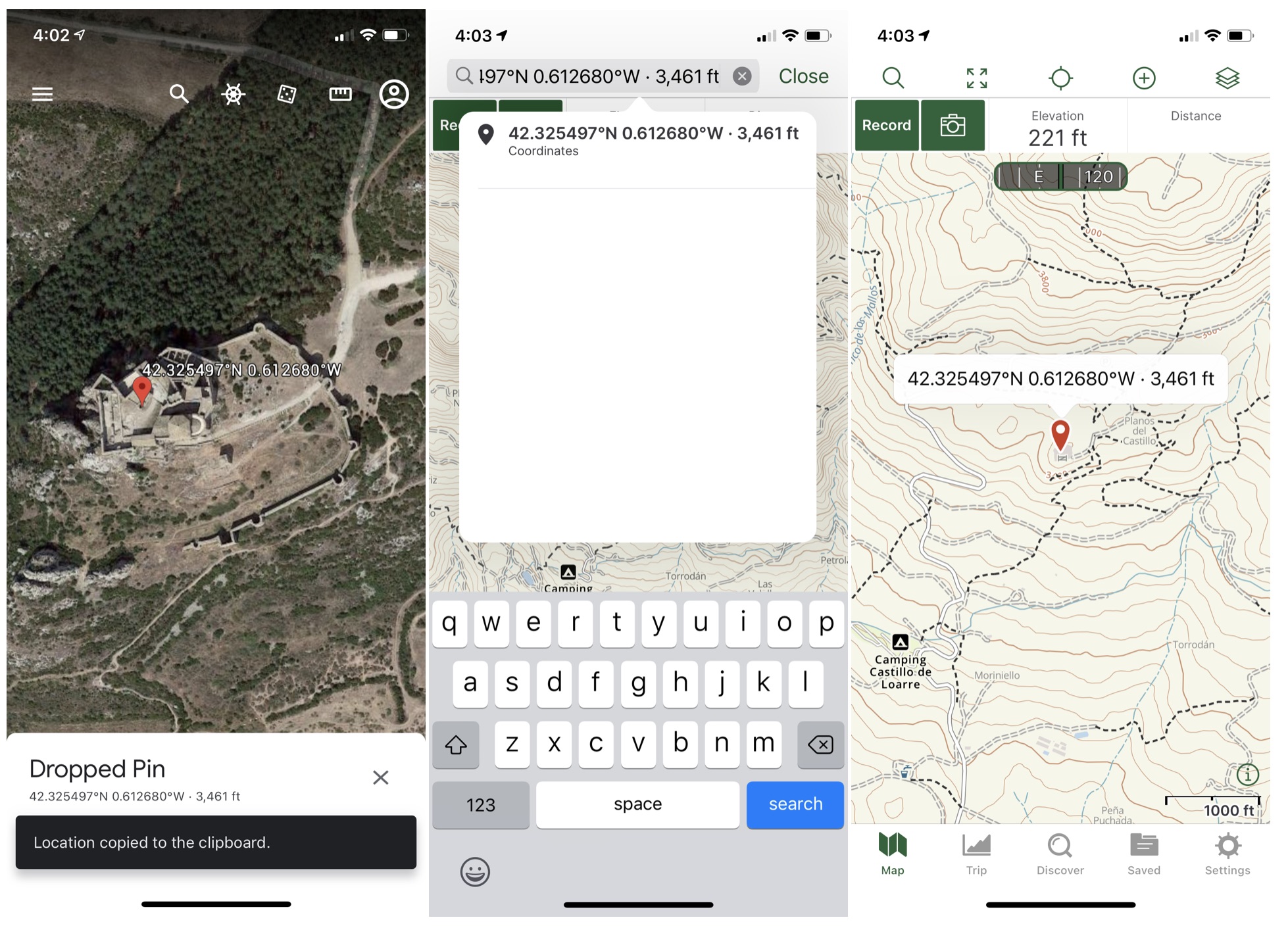 - I search for POI in google earth for ex. "Castillo de Loarre" (Spain)