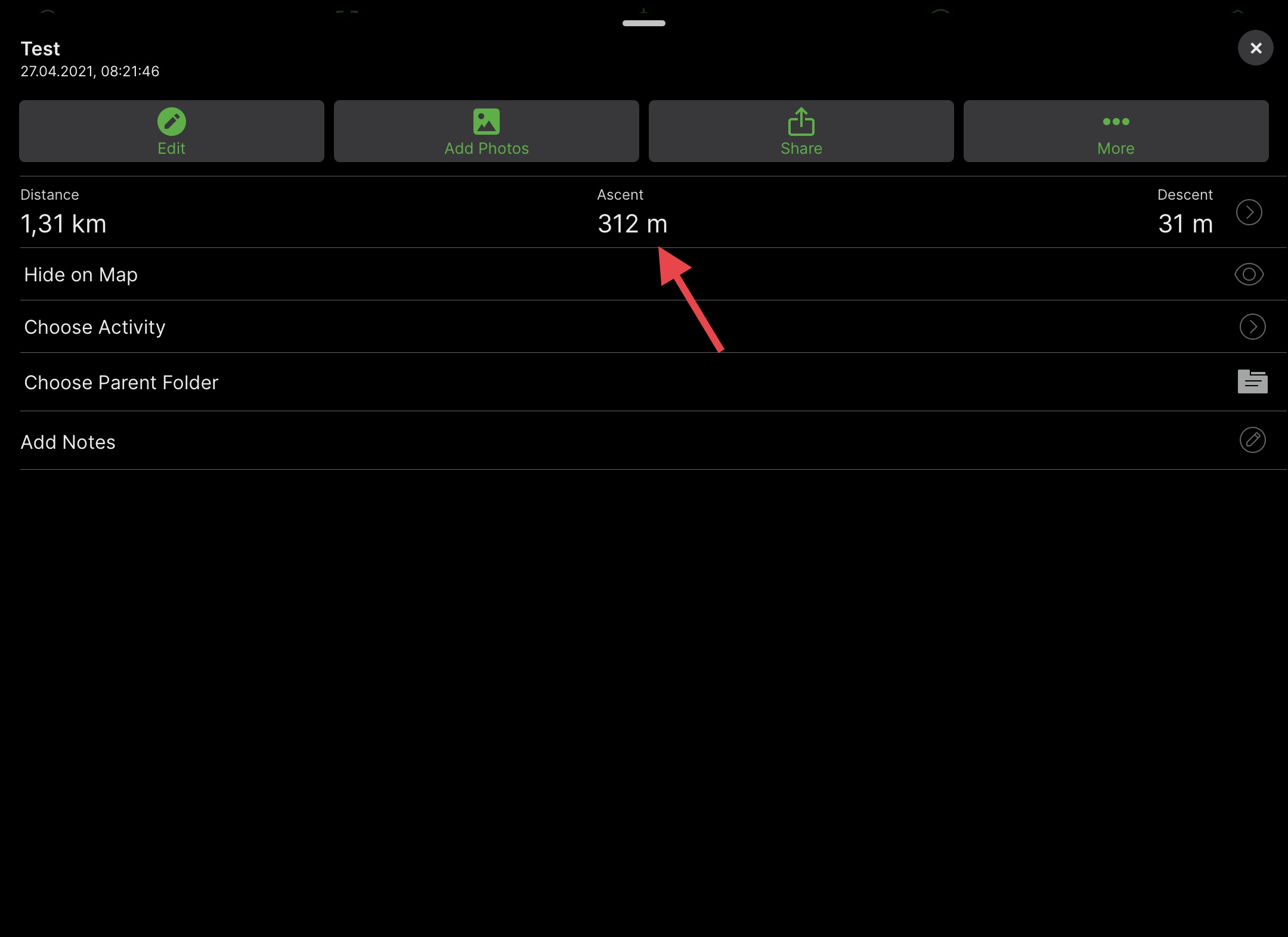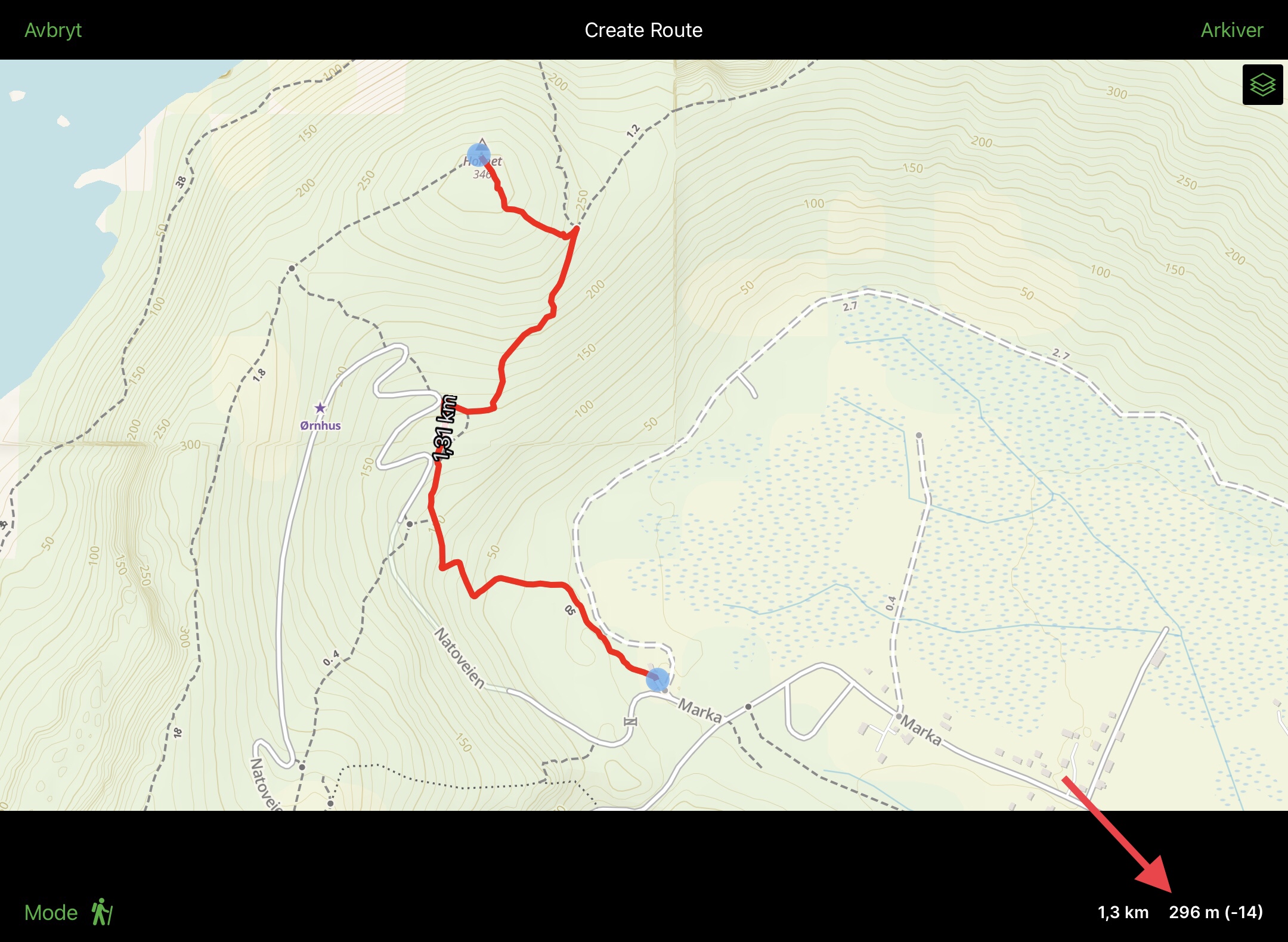 (I know there is not much difference in the example, but this is a short hike. On longer hikes the difference can be several hundred metres.)