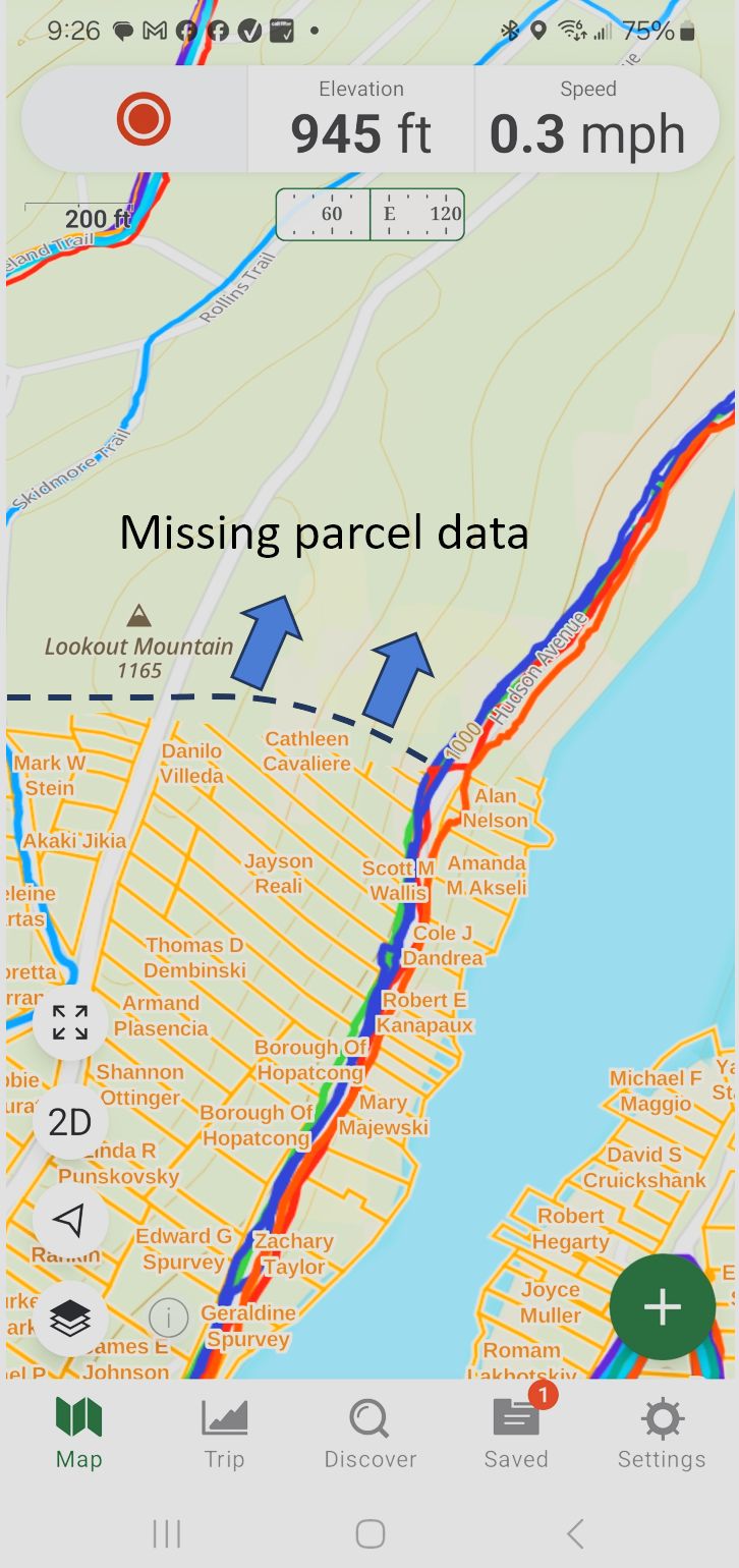 It does not work at all (no parcel data) via the browser interface (Chrome and FireFox on Windows 11) and on iOS app, while it works some places with the Android app. In Android the parcel data will suddenly stop, as reflected in the image.