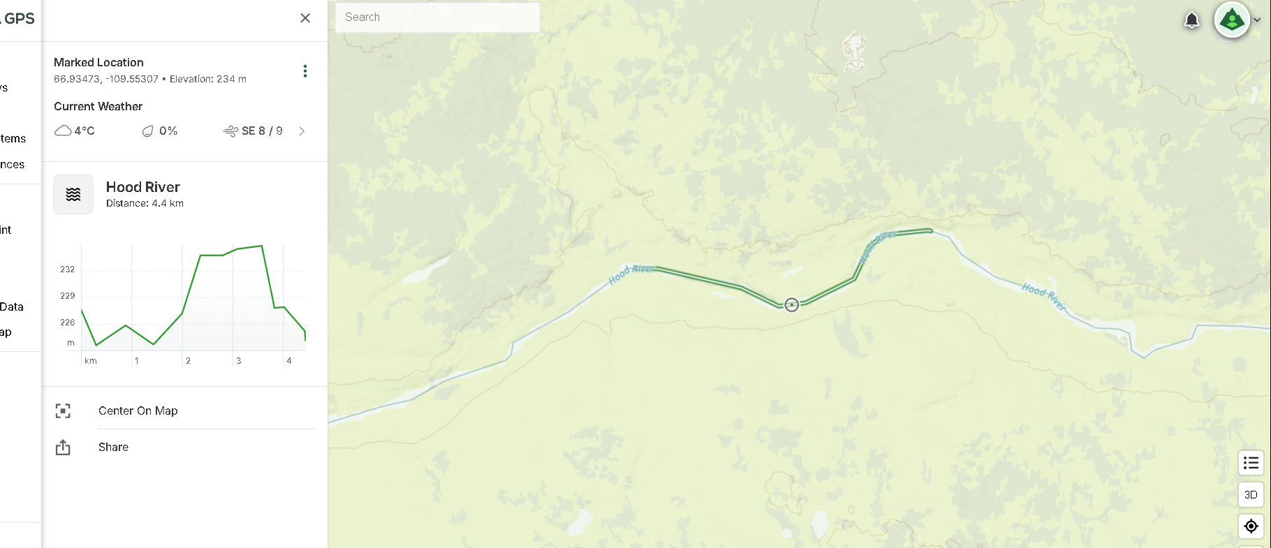 How did you get that to pop up? I tried the gps coordinates but that gets the point and not the line. Searching the river didn’t get me near you. Also, is this only web or also on a mobile app? And if mobile app, iOS or android?