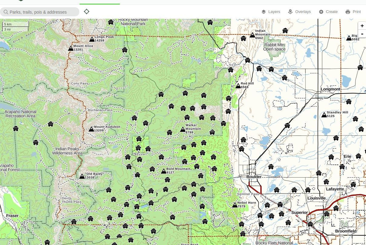 Why are mines featured so prominently on Gaia Topo? Sure they can be super interesting, but in mineral-rich areas it's just overwhelming. In my area - Boulder County Colorado - Gaia Topo shows more mines than any other geographic feature. I would much rather see other named features such as peaks, waterfalls, lakes, etc. than the mining ore cart. Once I zoom in a lot the mines would be very useful, but zoomed out I really don't want to see any of them, I would rather see the peaks and other named features. When I look at the image below, and I just think the area is a wasteland of open pit mines, which is not. Could the scale dependency of the POI's and labels be tweaked to show more of the natural features and less of the mines?