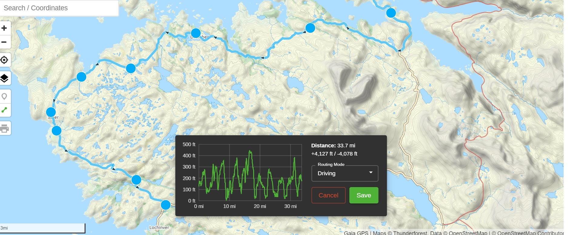 Black elevation chart right in the middle of my desktop when setting a route.