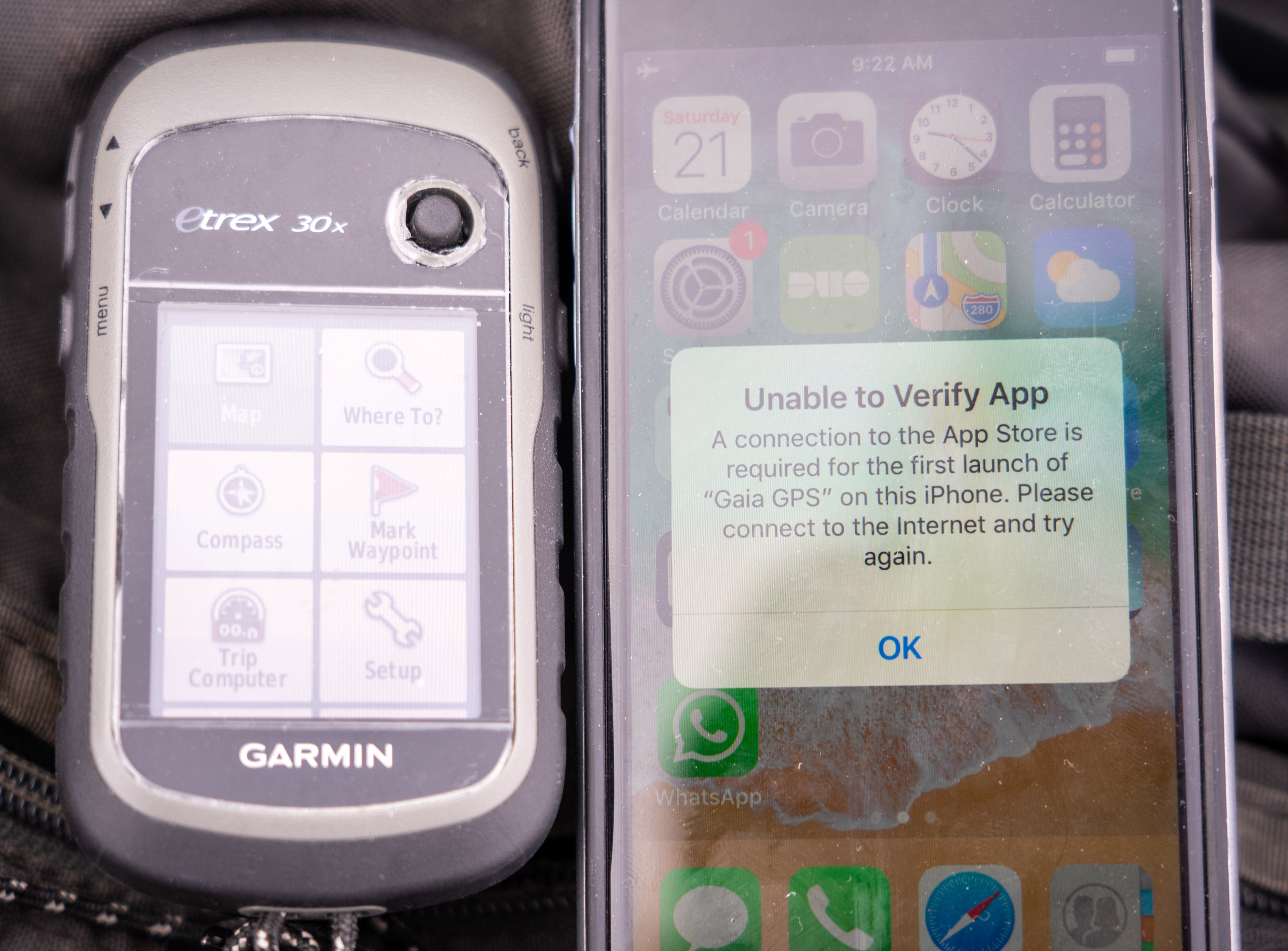 GaiaGPS has a major reliability problem. When one powers off their iPhone to save battery and then restarts it the next day, if there's no cell phone service GaiaGPS doesn't work and you're SOL. See the attached.
