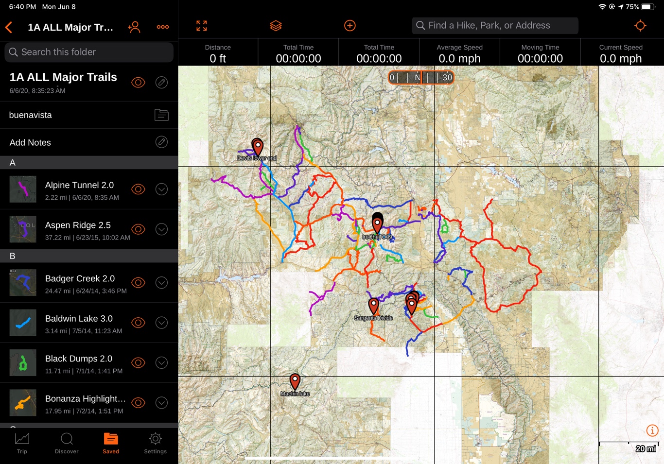 Now when I open Gaia on my iPad I can browse all the trails nearby and plan my trips. What is nice they are color coded on the JeepTheUsa website to know what are roads vs trails.
