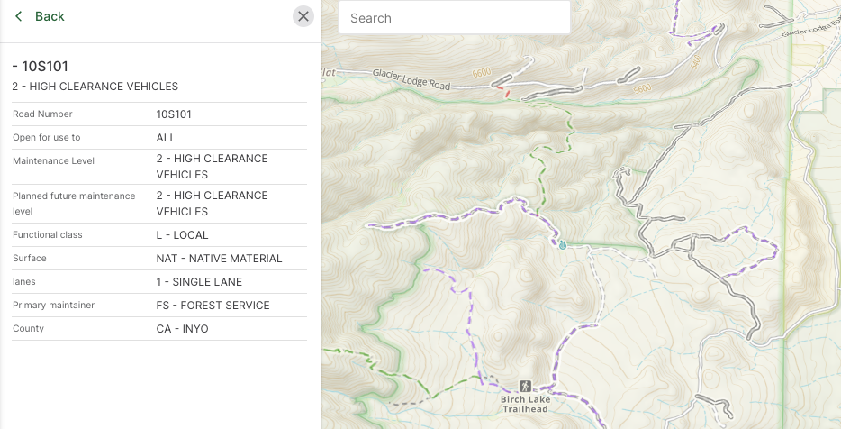 For example, here is a description of 10S101 in the Inyo National Forest: