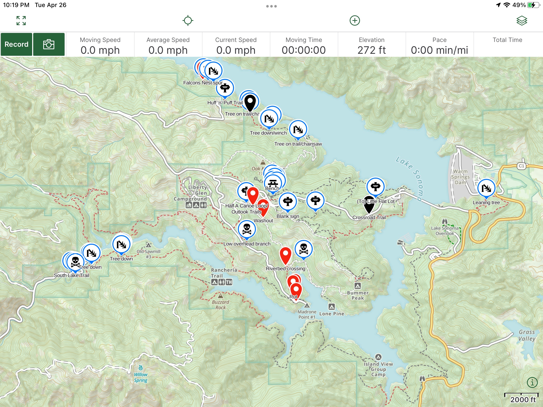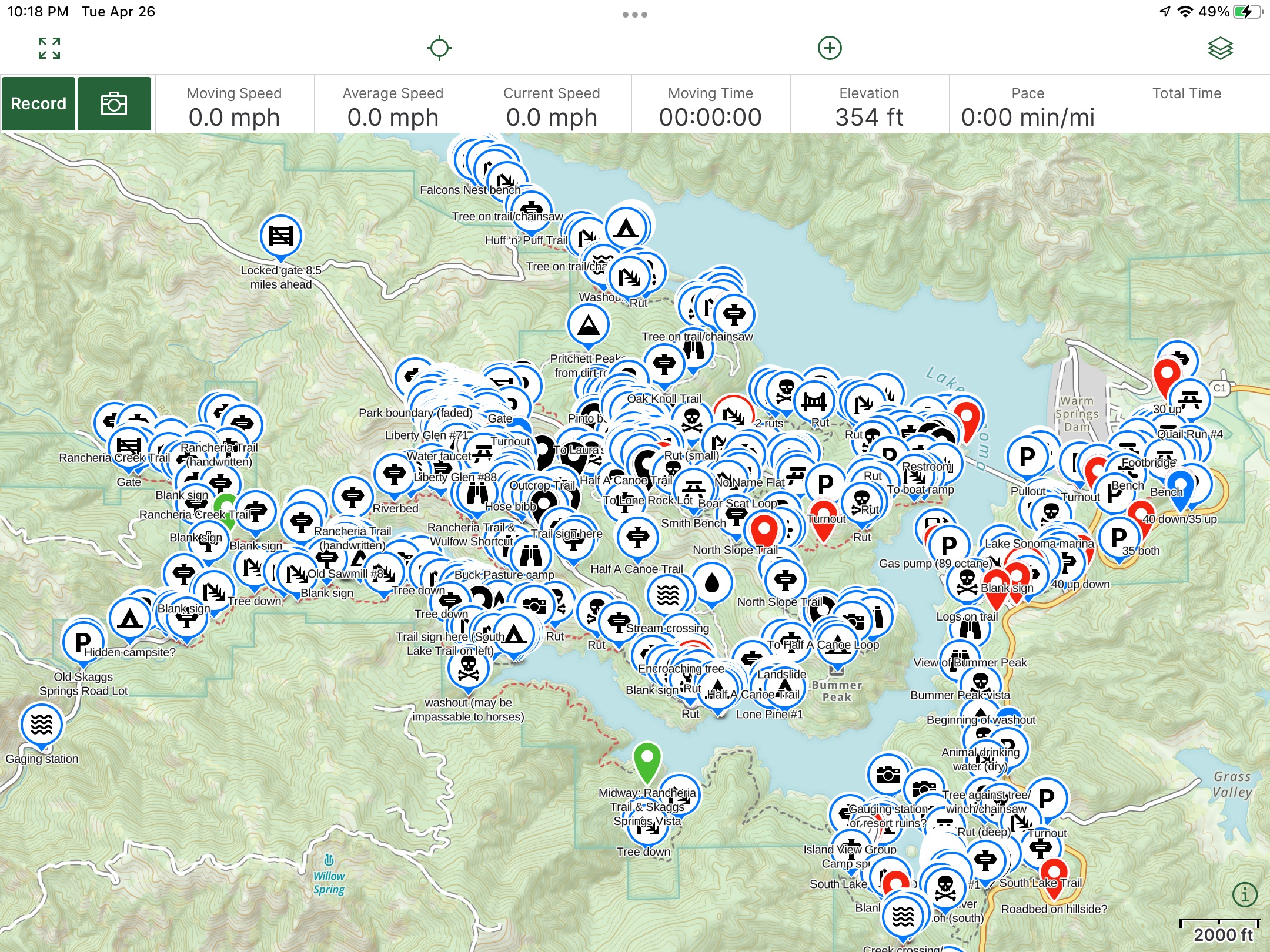 All of the waypoints shown are in the Lake Sonoma folder. When I toggle the eye symbol to hide all the waypoints contained in this folder they should all disappear but some some remain. I checked each of the remaining waypoints and they are all in the Lake Sonoma folder.
