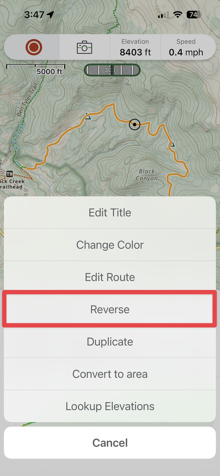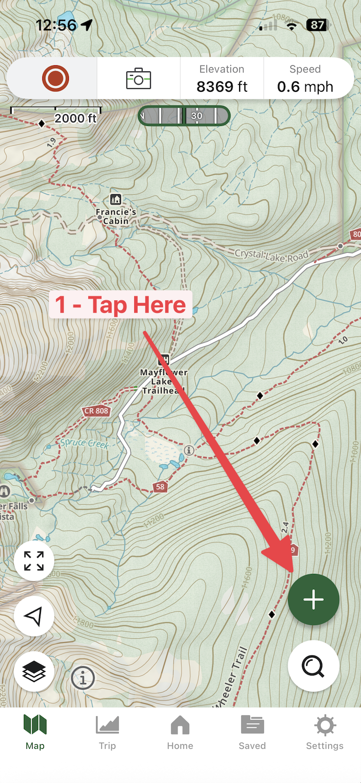 Note: Snap-to routing only works with trails and roads displayed on Gaia Topo. Follow these steps to make Gaia Topo the active map layer.