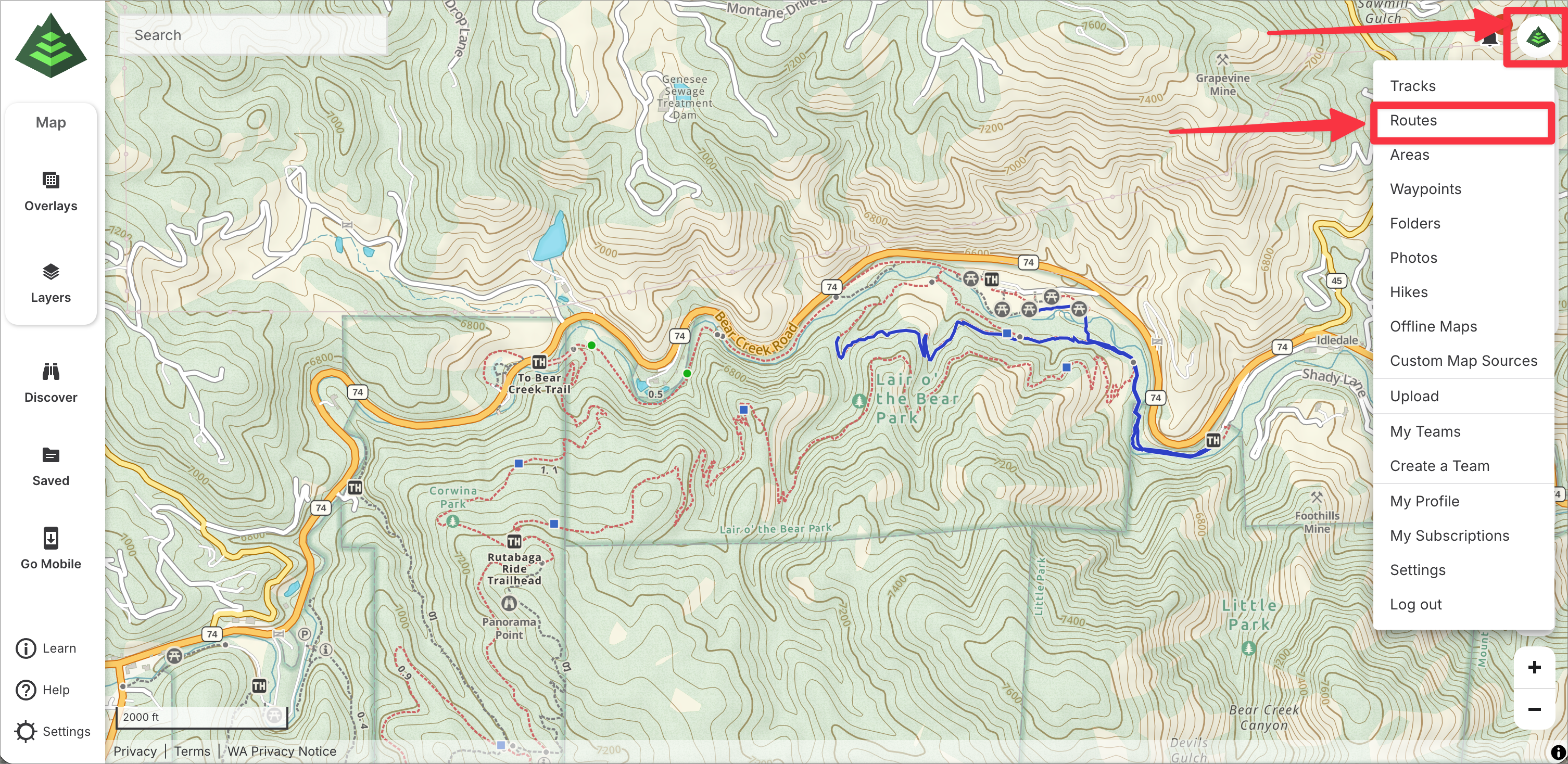 1. Log in to your account on gaiagps.com. Then click the drop-down menu next to your username/icon and select the type of data you wish to change.