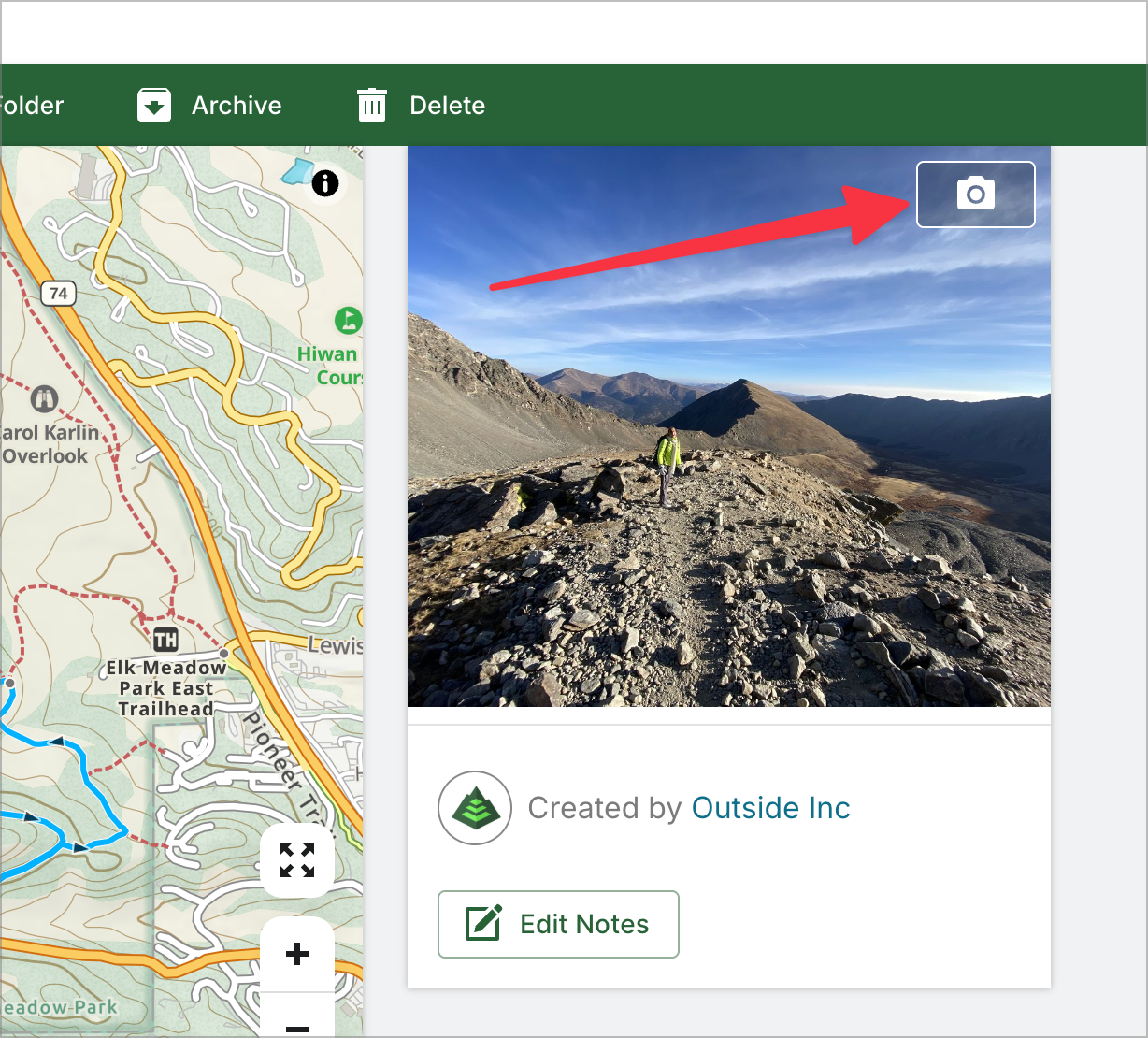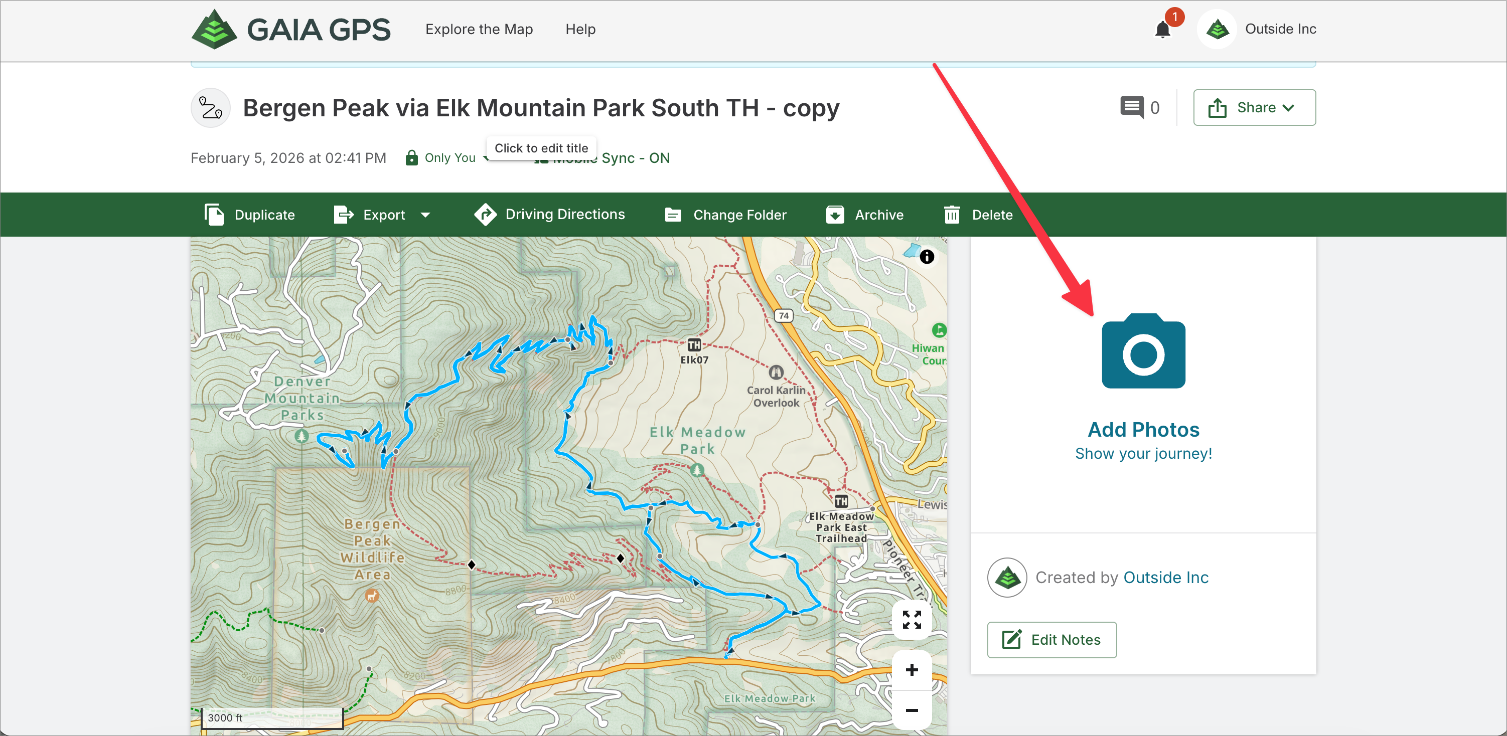 Note: If the photos do not contain location or time data, they will be added to the start of your track. Photos must be a .jpeg or .png and 20mb or smaller.