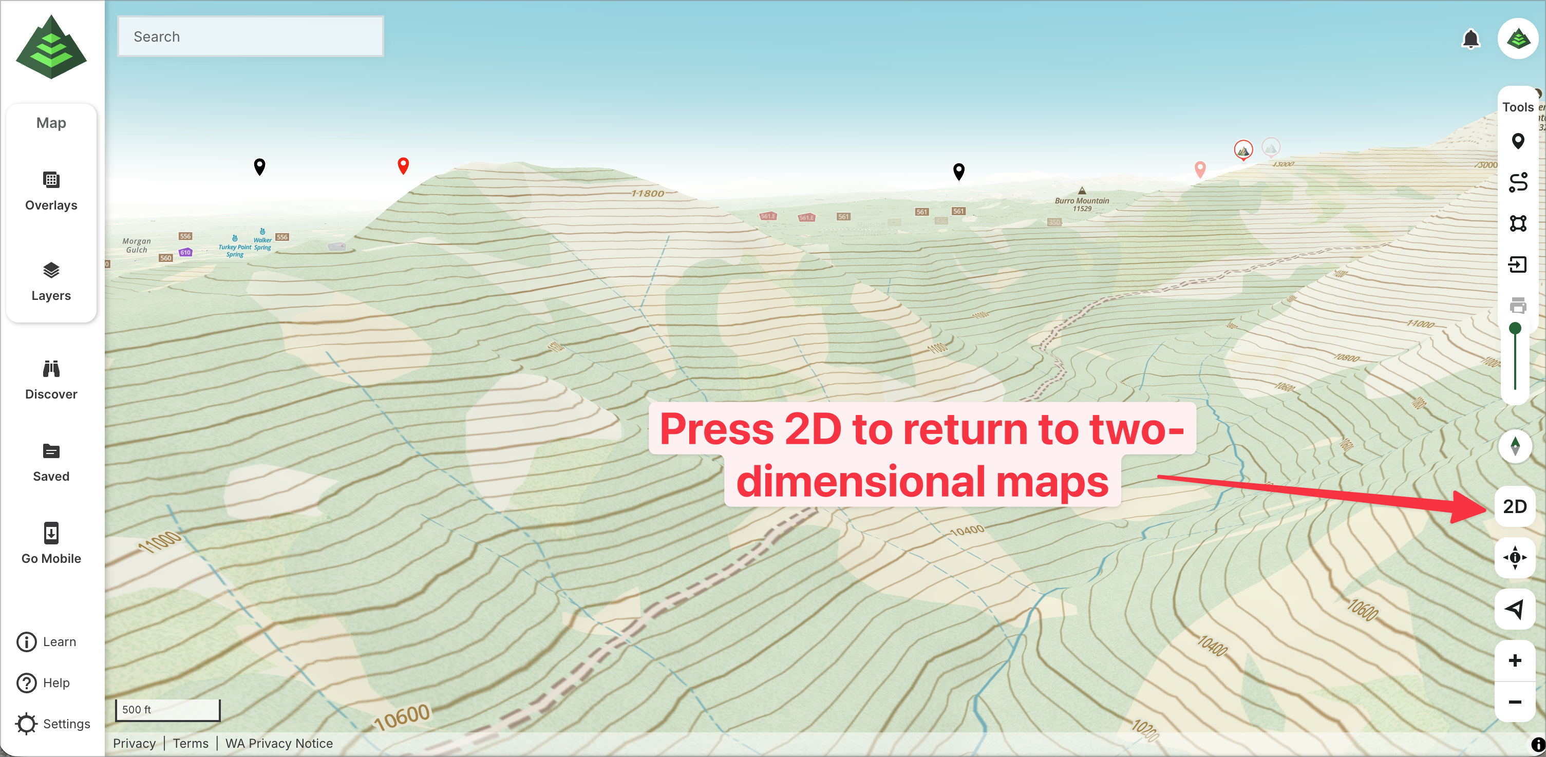 - Drop waypoints in places you’ll need to remember. You have a whole new perspective in 3D mode that can be useful for labeling viewpoints in particular.