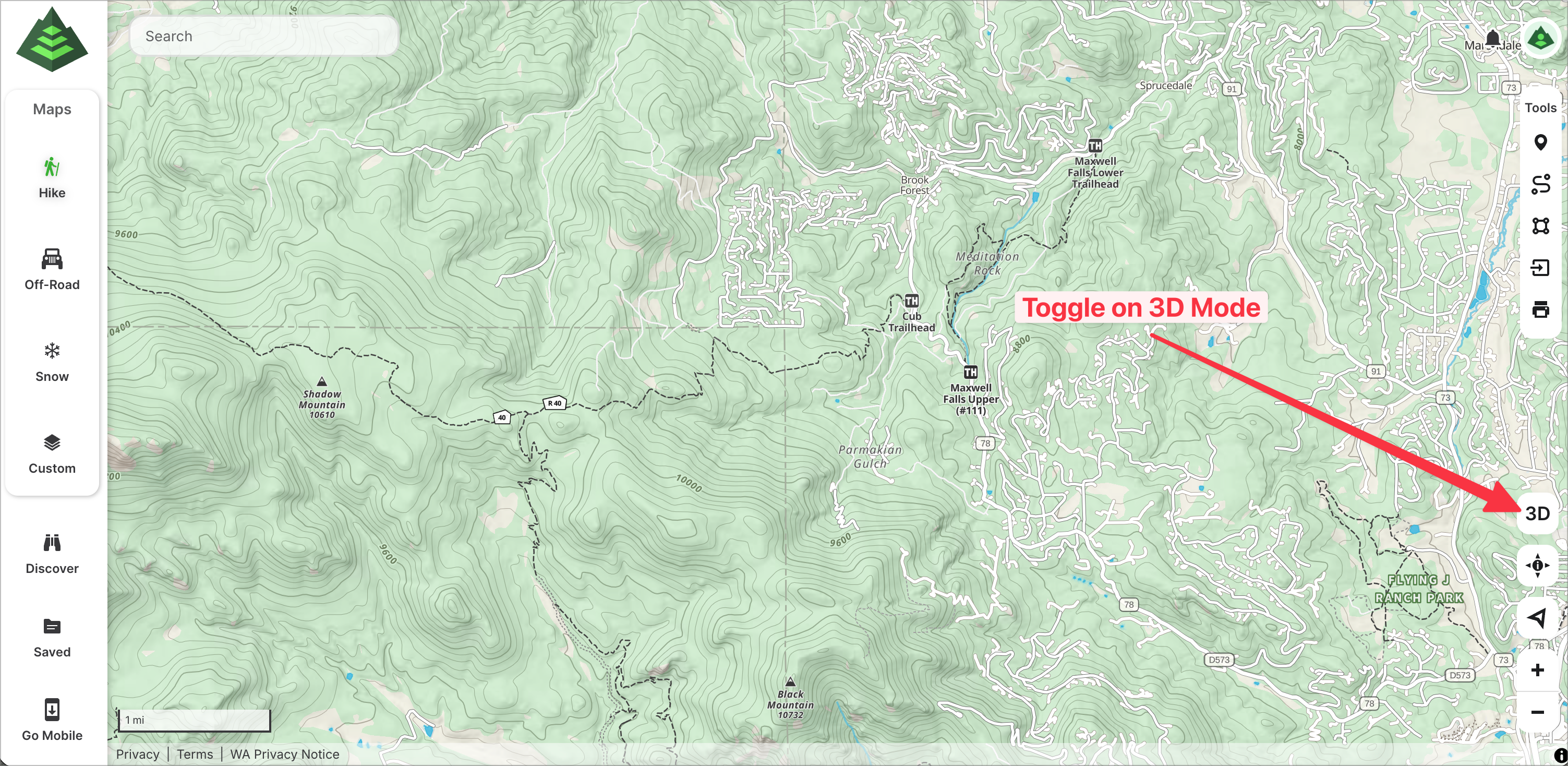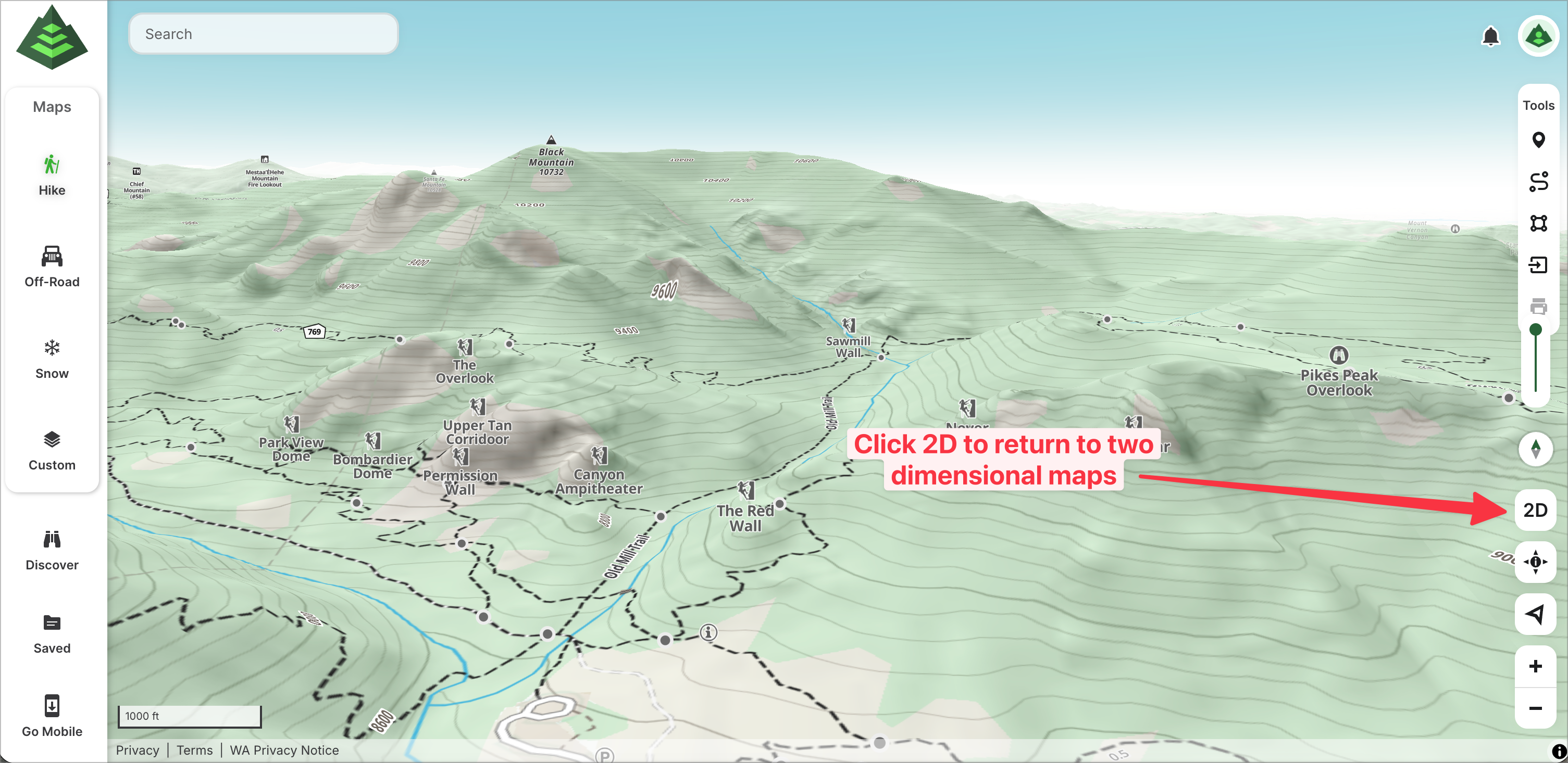 Note: 3D maps are only available with a Premium Membership on both gaiagps.com and on the Android app.