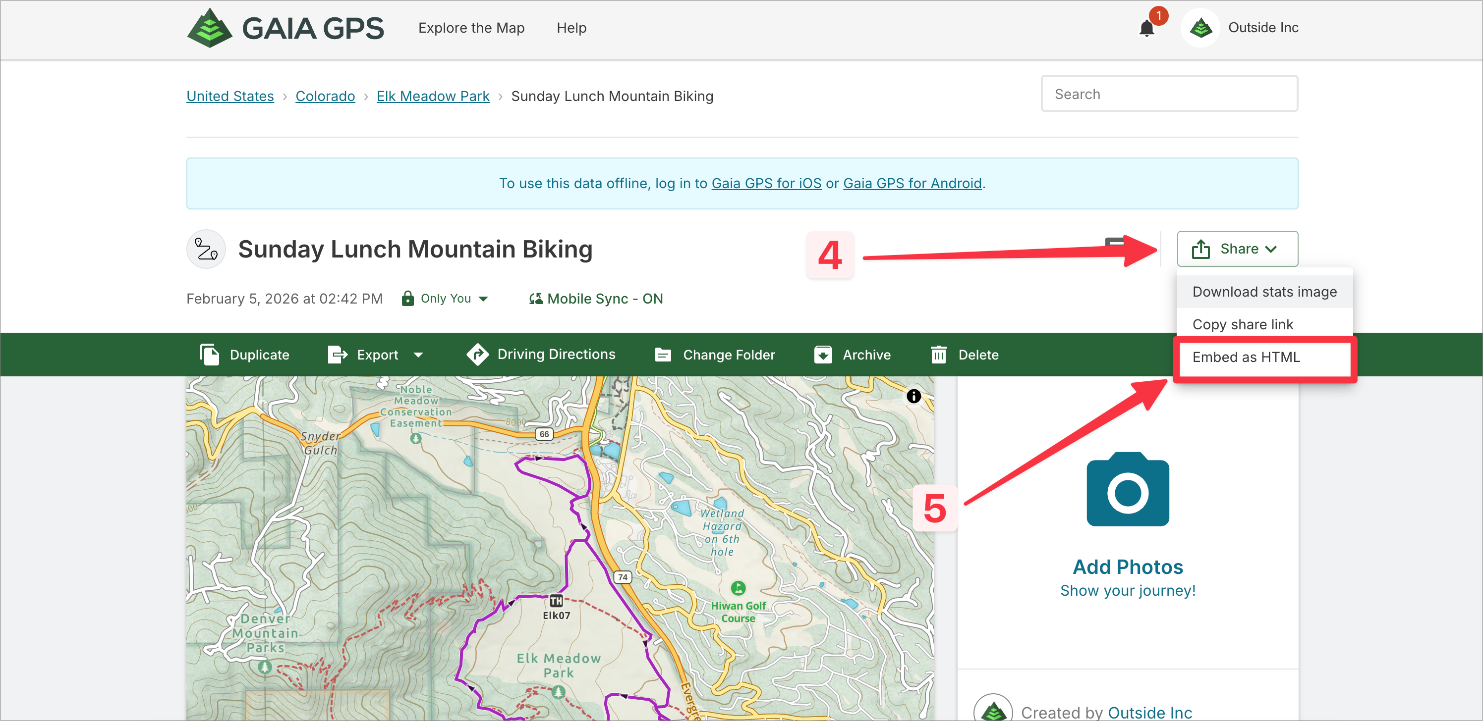 Embed a Map View of Data Created in Gaia GPS on Your Website
