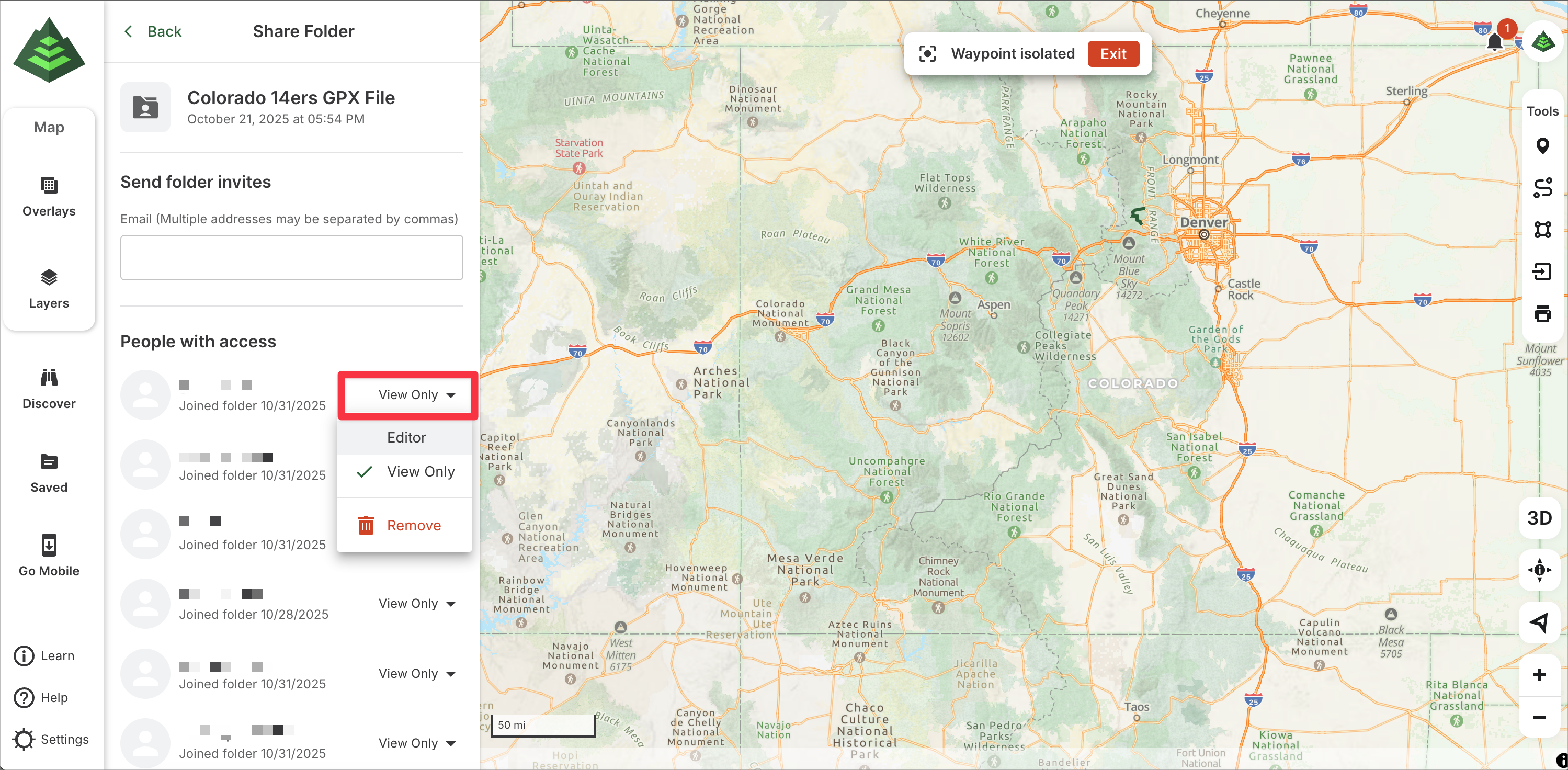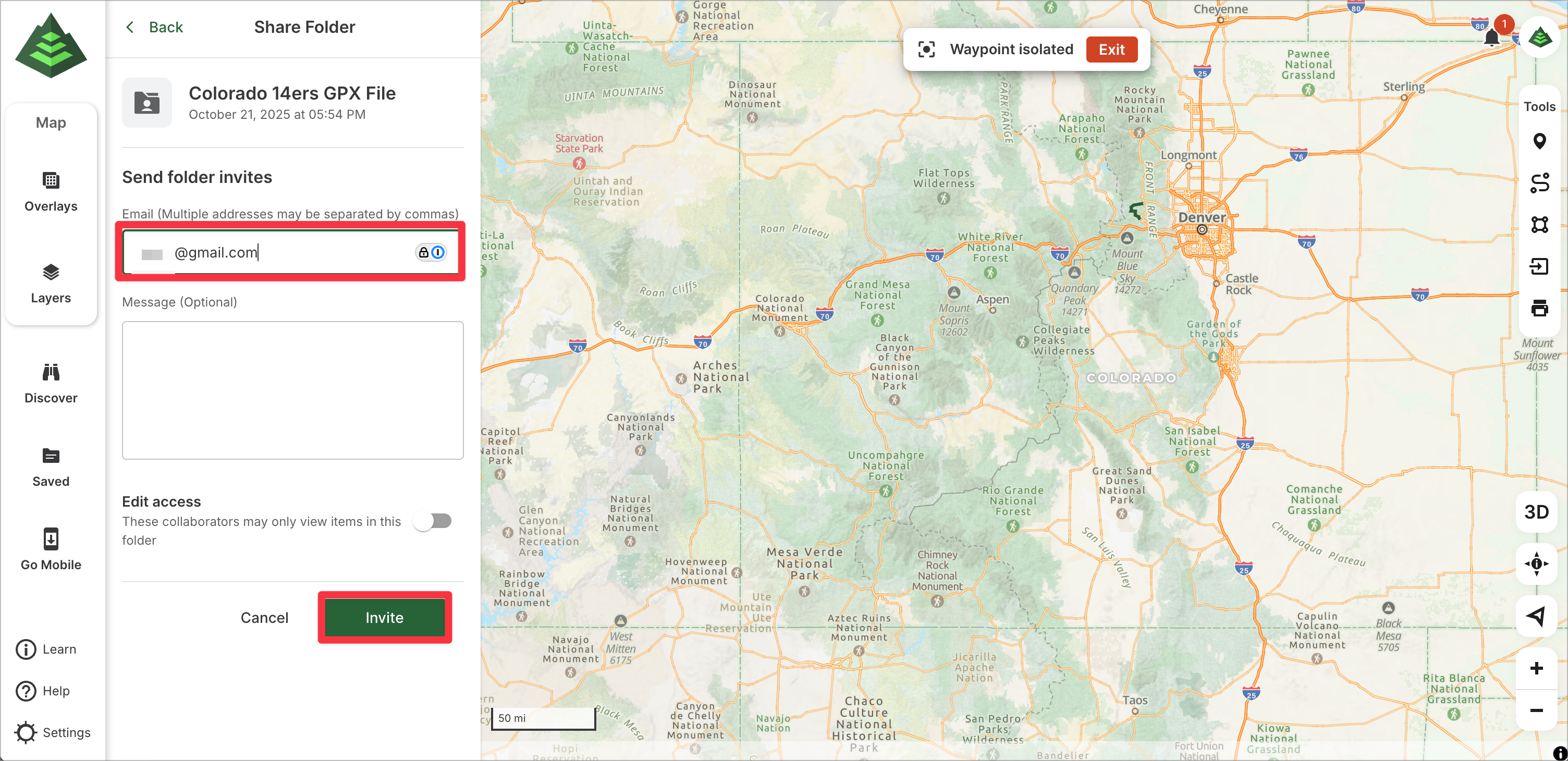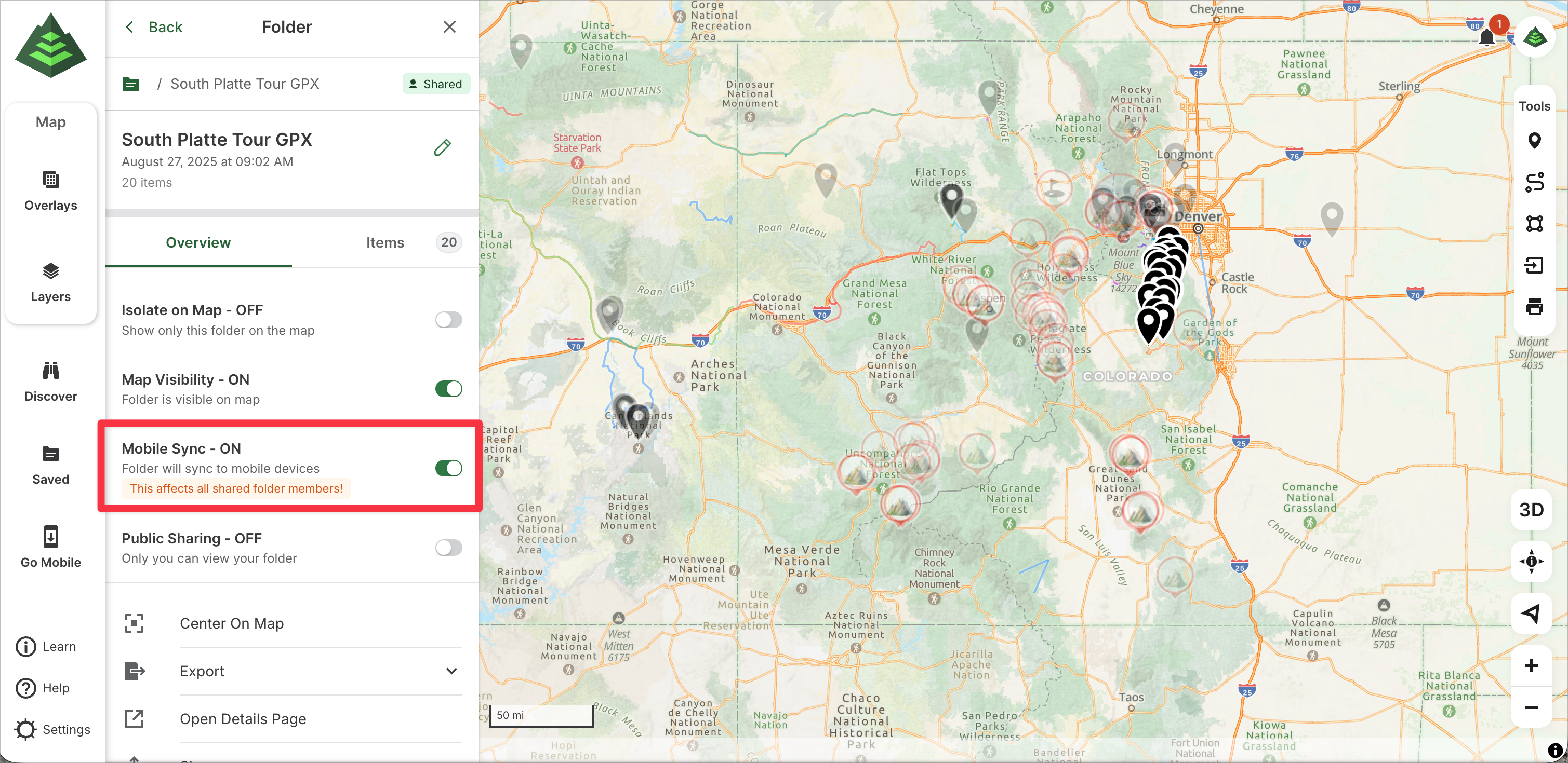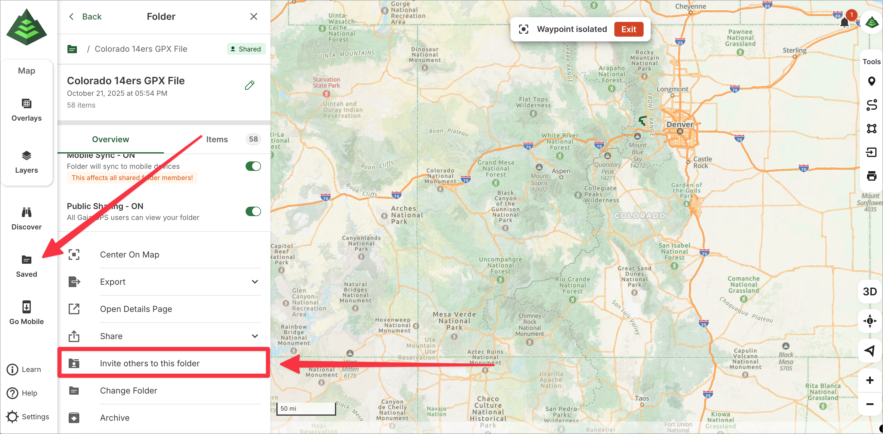 This article will show you how to use Shared Folders on gaiagps.com. Use a Shared Folder to plan for your next group trip or share important data with your organization. Groups or organizations of Gaia GPS users can receive real-time updates to the shared folders with an internet connection.