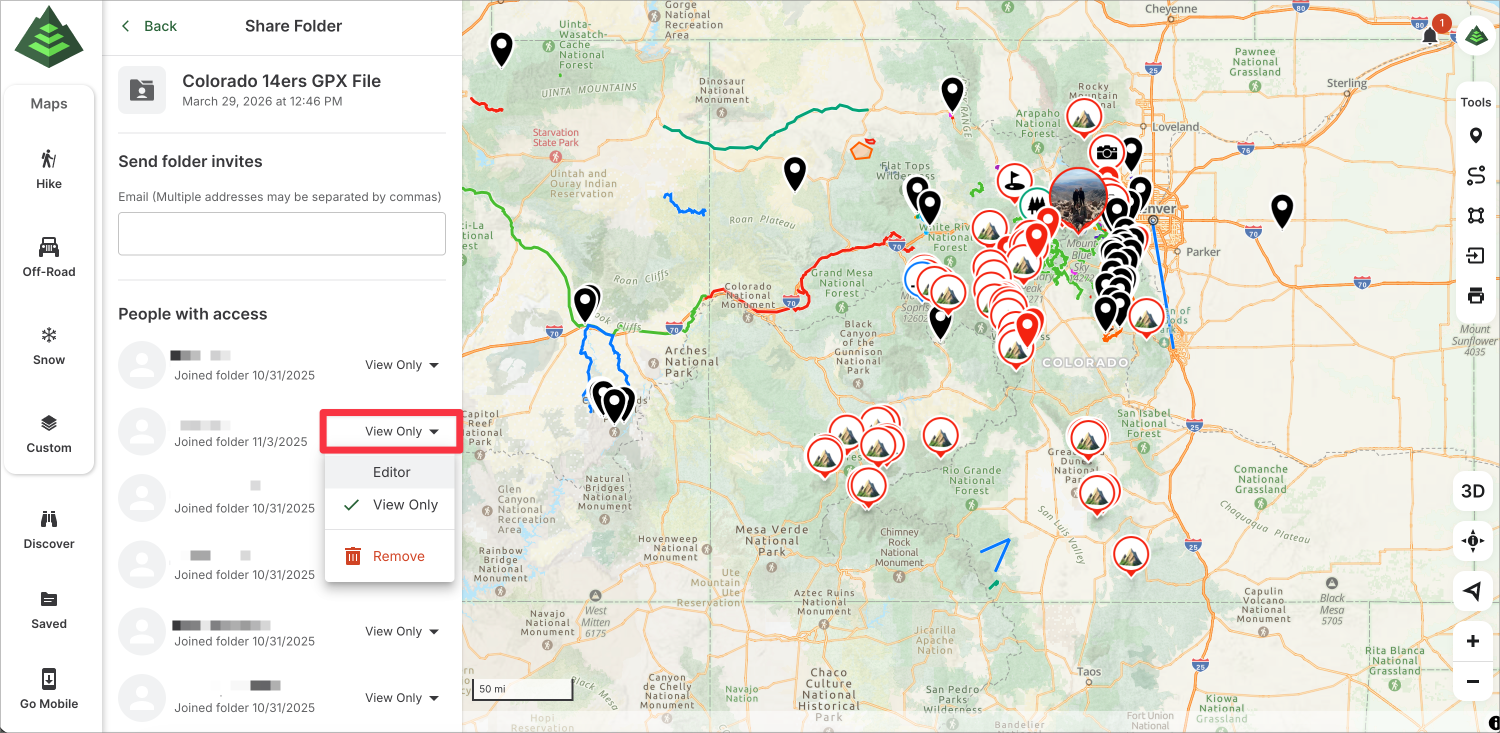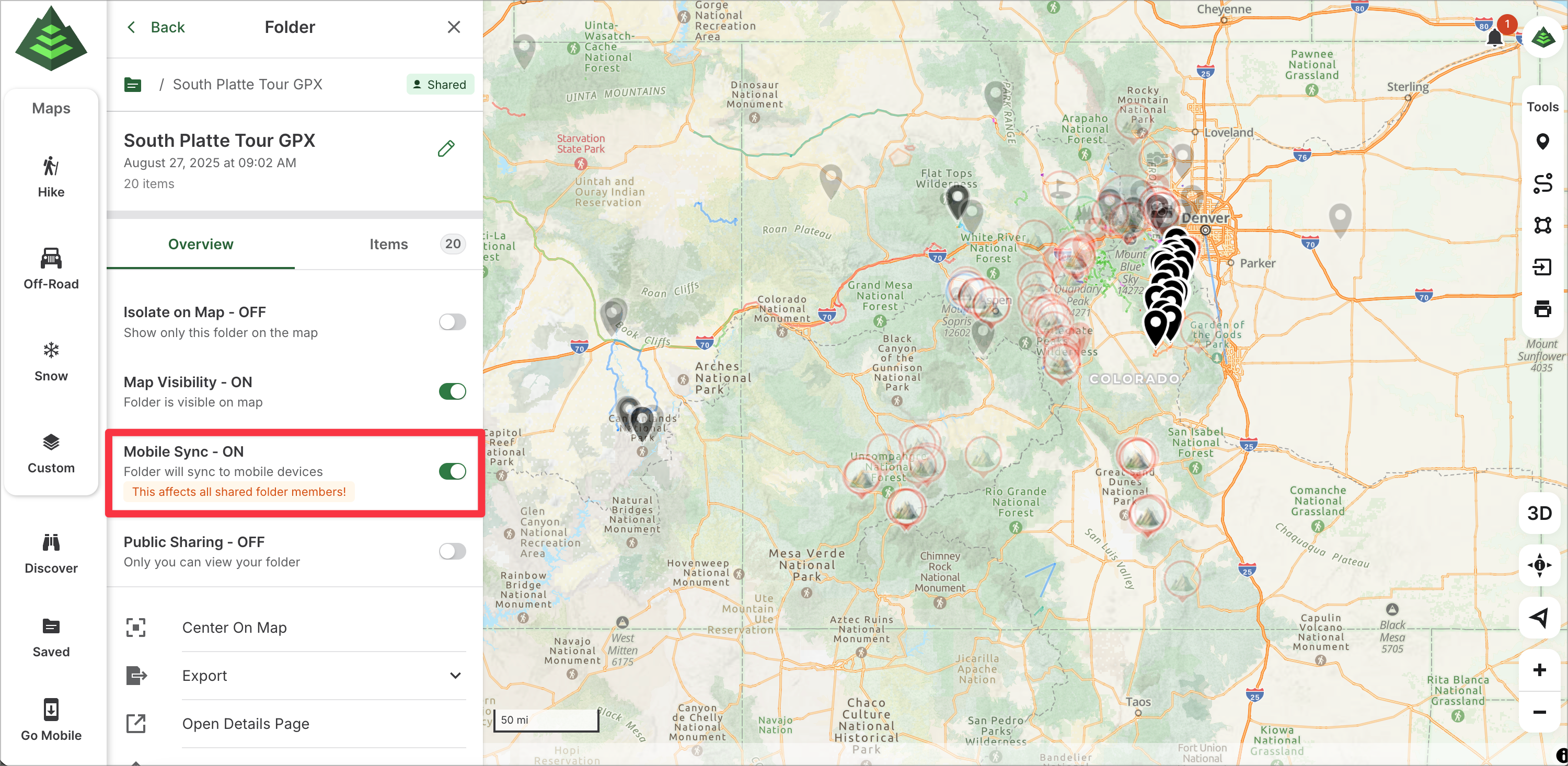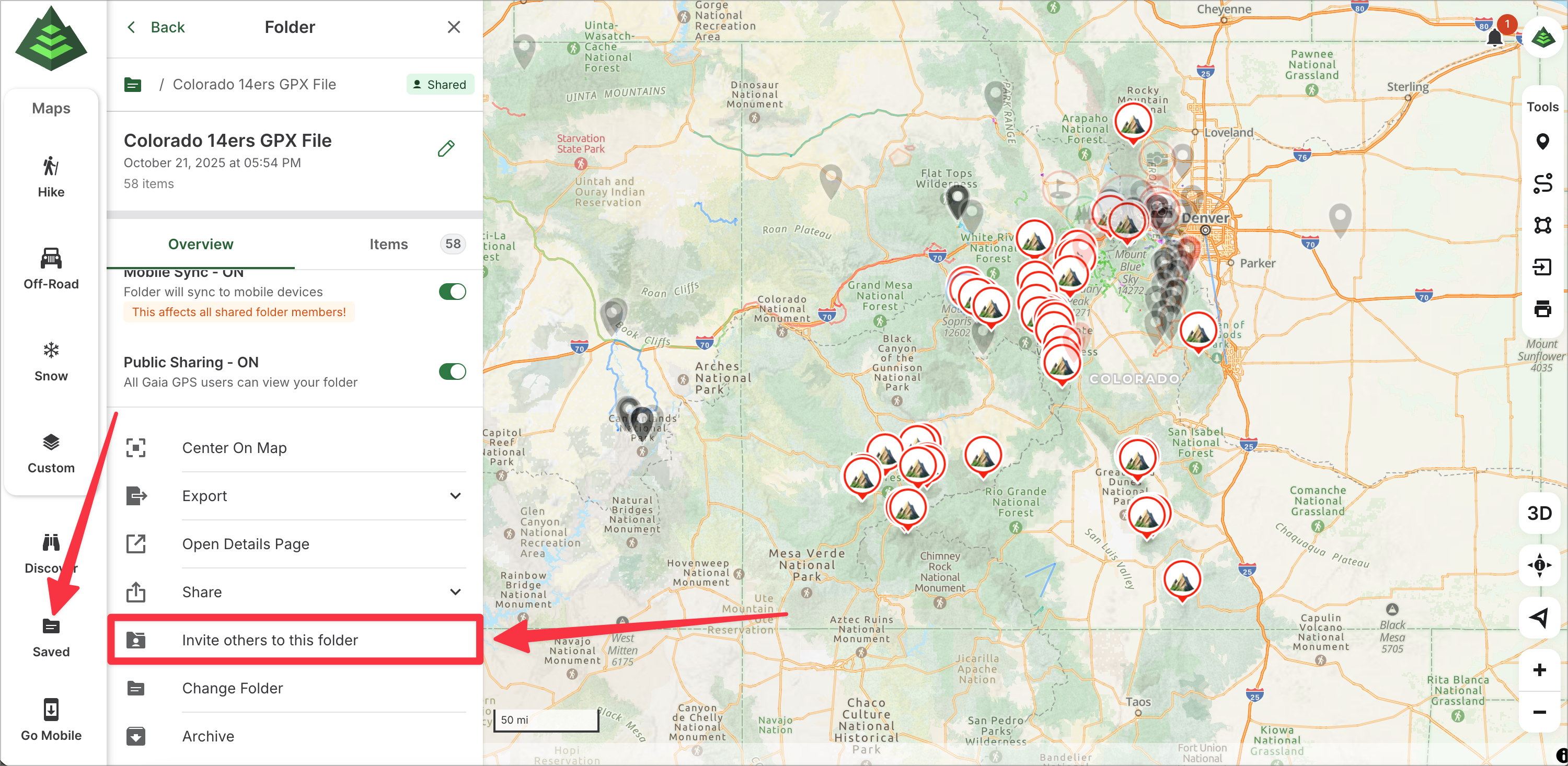 This article will show you how to use Shared Folders on gaiagps.com. Use a Shared Folder to plan for your next group trip or share important data with your organization. Groups or organizations of Gaia GPS users can receive real-time updates to the shared folders with an internet connection.