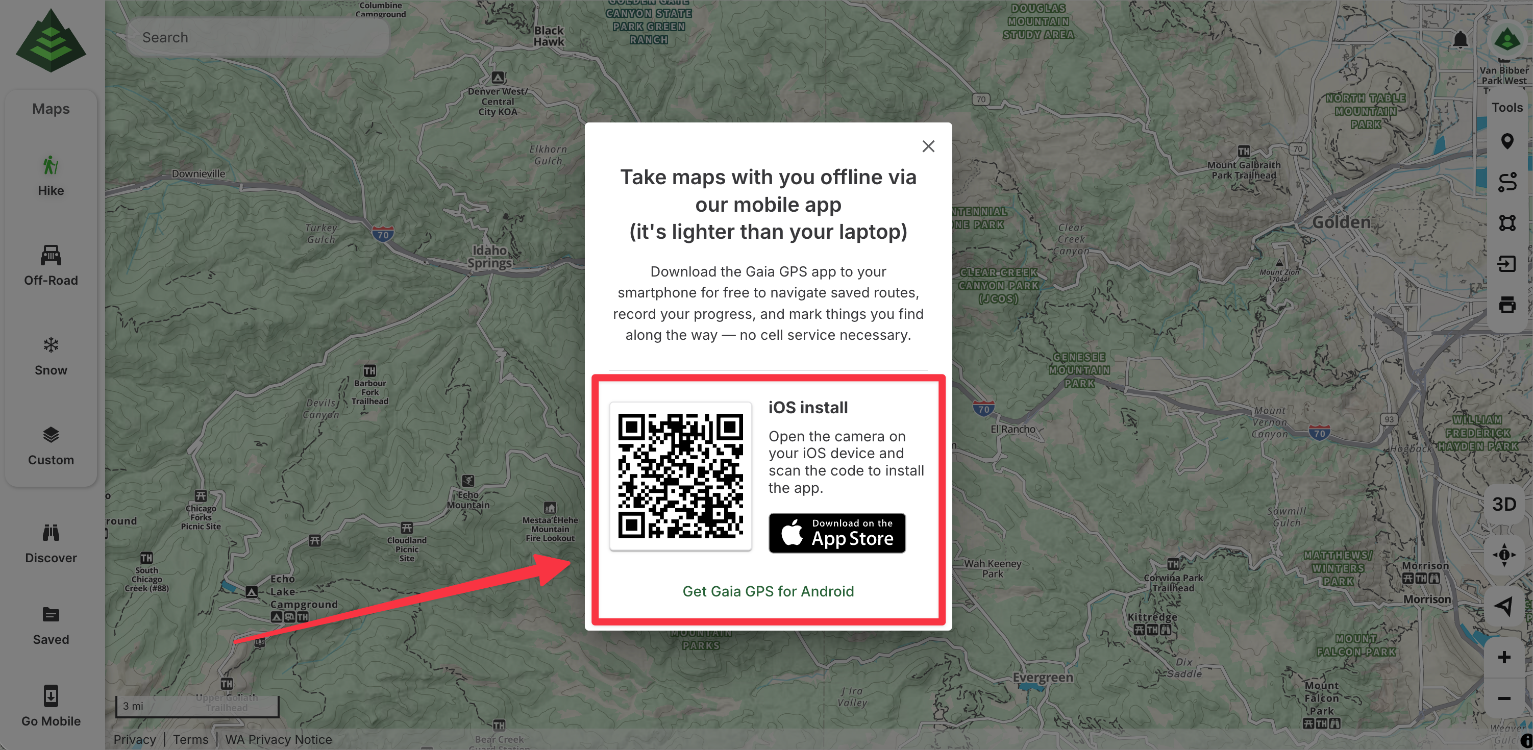 Download the Gaia GPS app on your phone or tablet and start navigating like a pro. Head to the App Store or the Play Store on your device to download the app for free today.